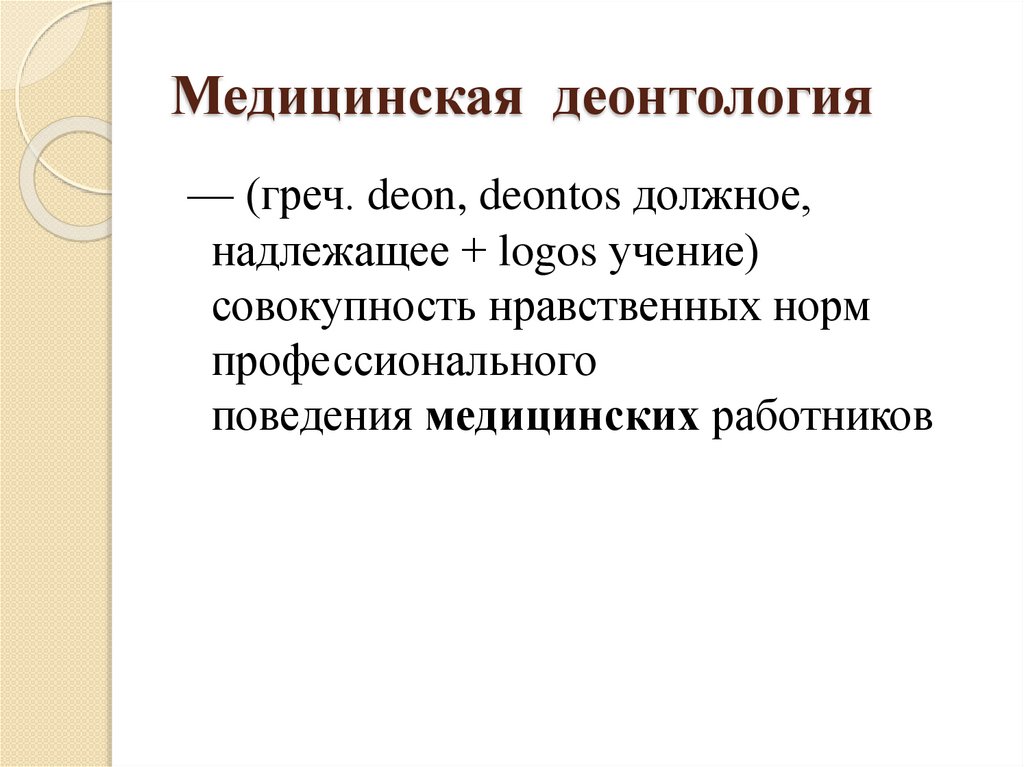 Медицинская этикаМедицинская этика (медицинская деонтология)