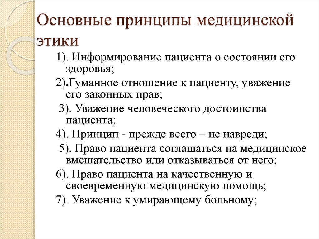 Основные принципы медицинскойэтики