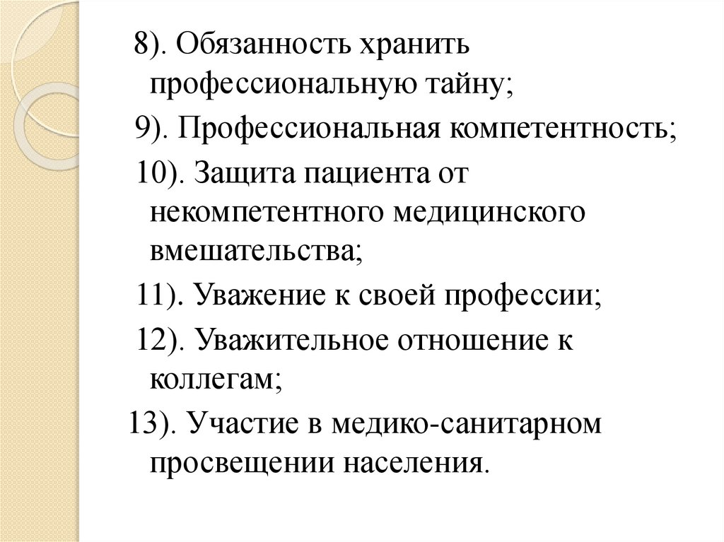 8). Обязанность хранитьпрофессиональную тайну;
