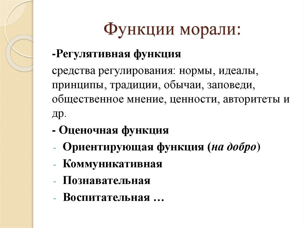 Функции морали:-Регулятивная функция