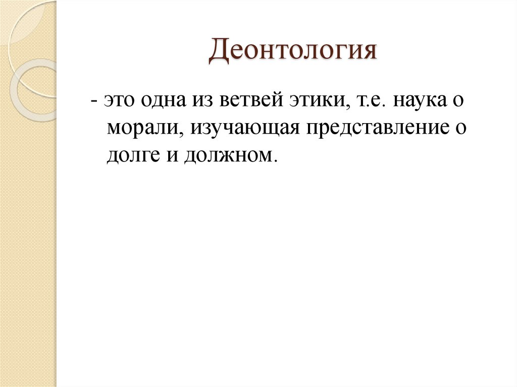 Деонтология- это одна из ветвей этики, т.е. наука о