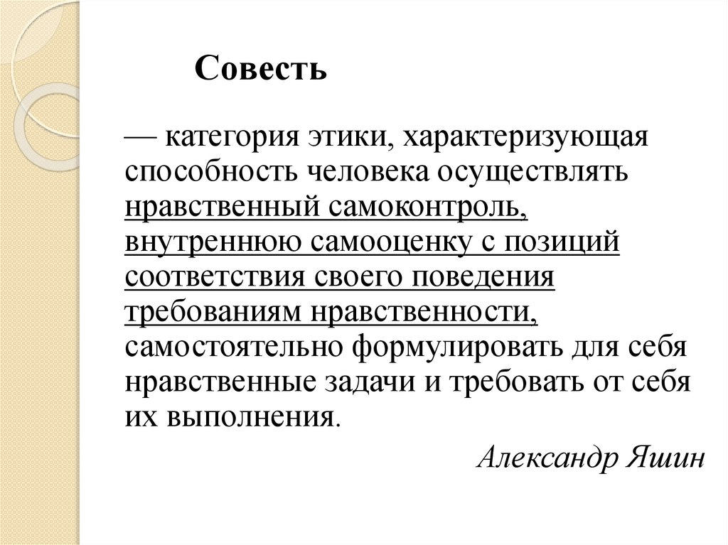 Совесть— категория этики, характеризующая