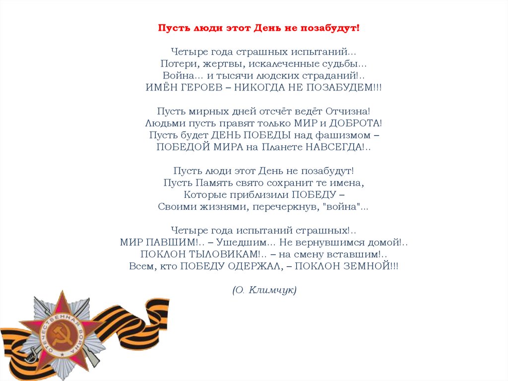 Пусть люди этот День не позабудут!Четыре года страшных испытаний...