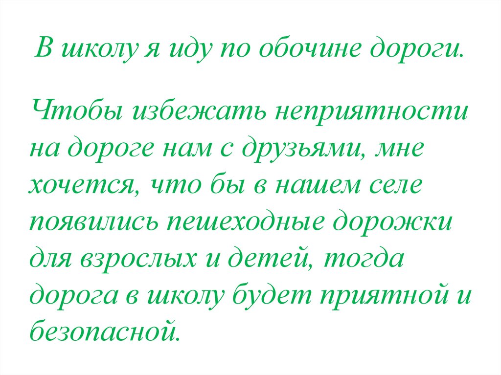 В школу я иду по обочине дороги.Чтобы избежать неприятности