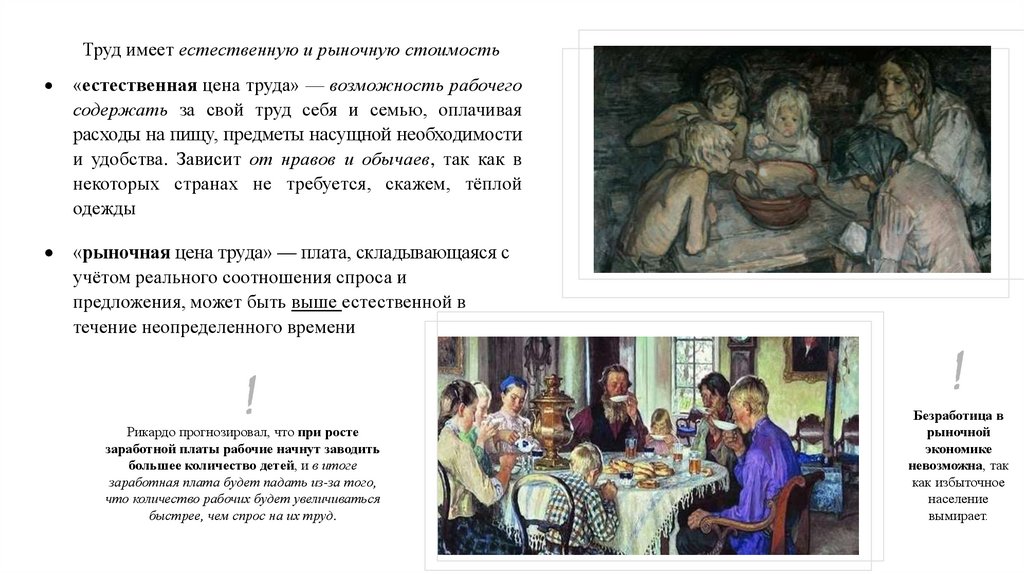Труд имеет естественную и рыночную стоимость«естественная цена труда» — возможность рабочего