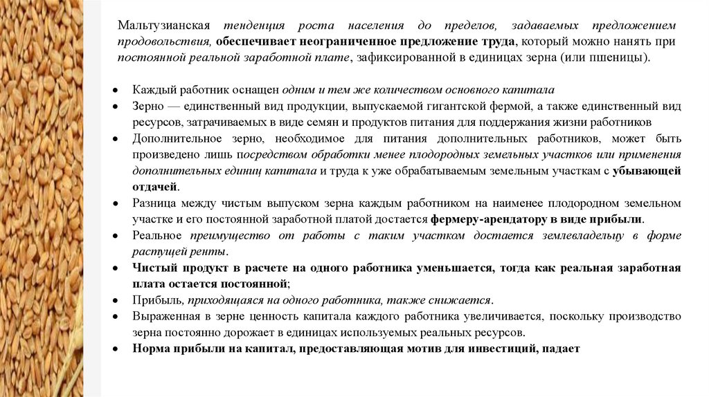 Мальтузианская тенденция роста населения до пределов, задаваемых предложениемпродовольствия, обеспечивает неограниченное предложение труда, который можно нанять при