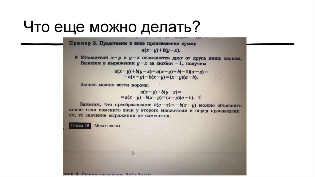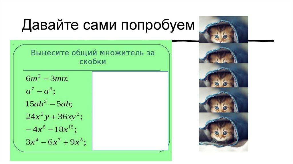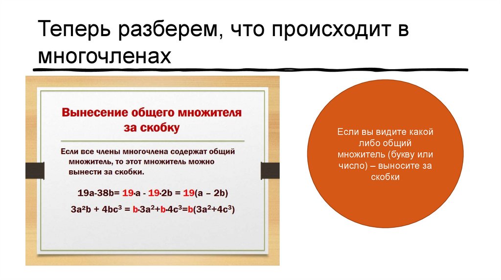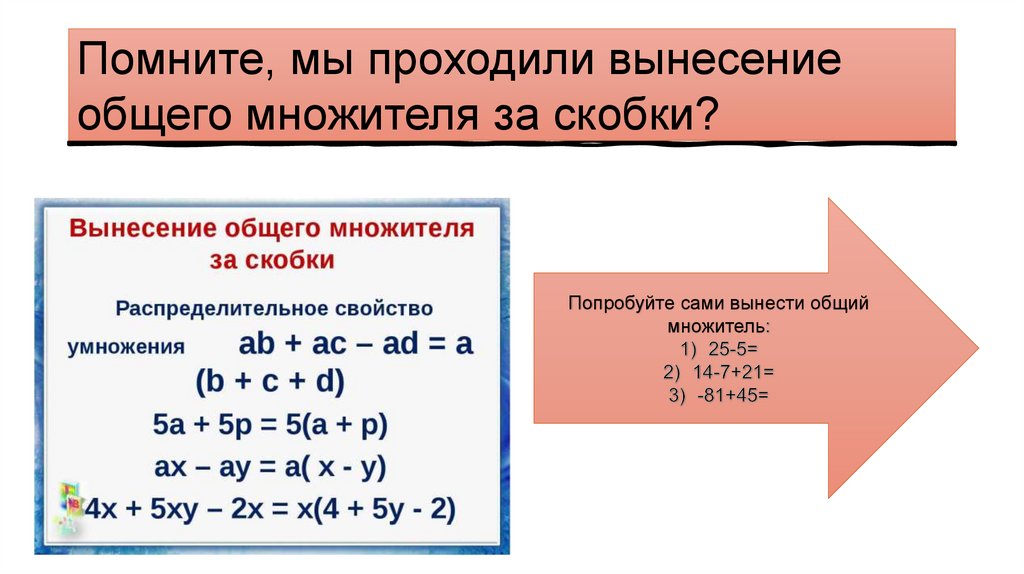 Помните, мы проходили вынесениеобщего множителя за скобки?