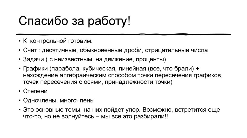 Спасибо за работу!К контрольной готовим:
