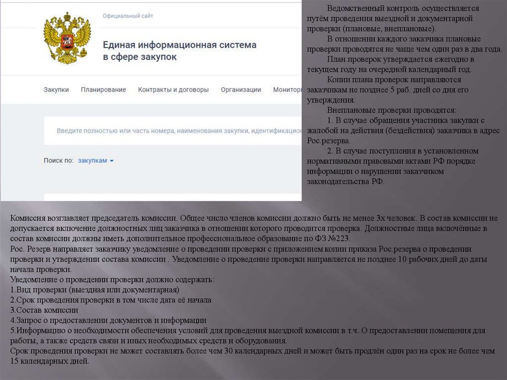 Рос. Резерв направляет заказчику уведомление о проведении проверки с приложением копии приказа Рос.резерва о проведении