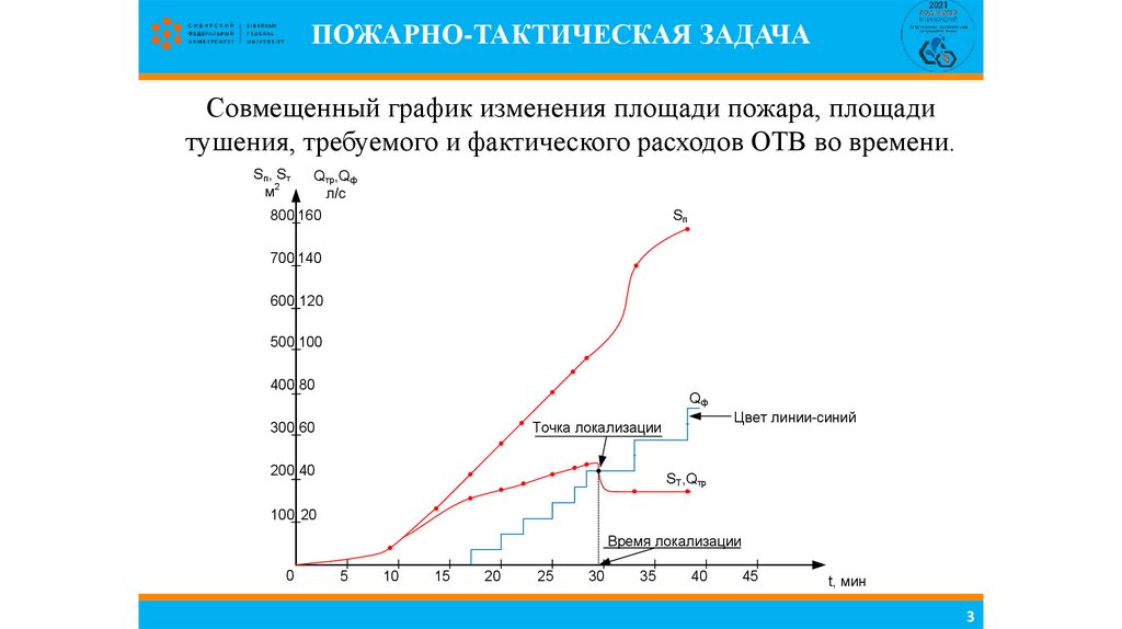 ПОЖАРНО-ТАКТИЧЕСКАЯ ЗАДАЧАСовмещенный график изменения площади пожара, площади