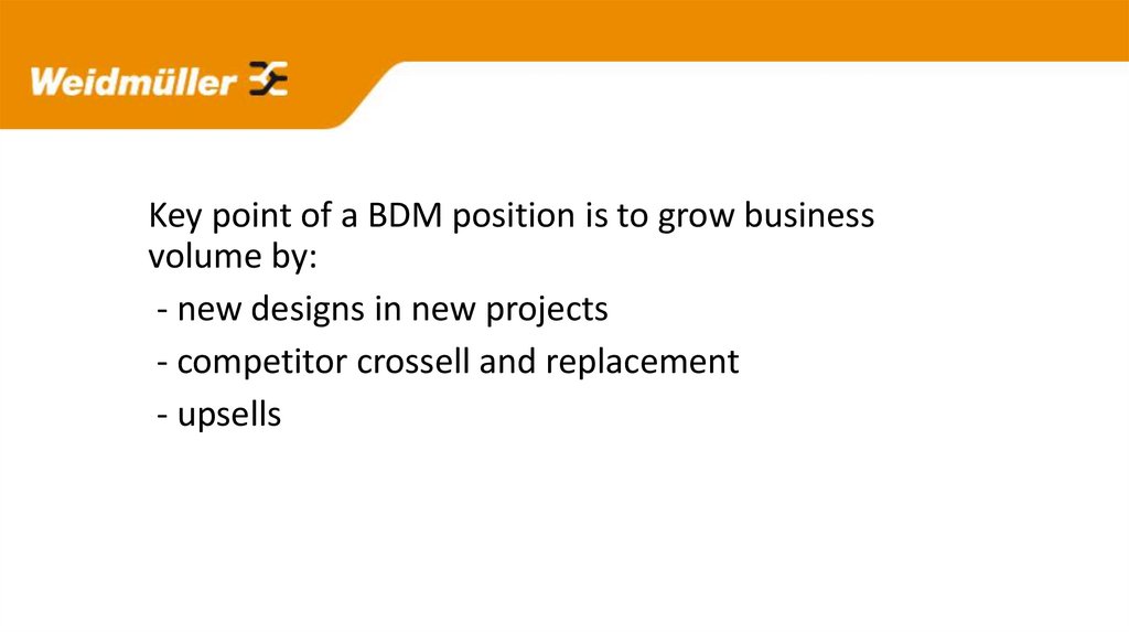 Key point of a BDM position is to grow businessvolume by: