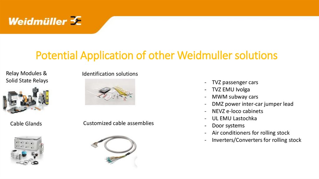 Potential Application of other Weidmuller solutionsRelay Modules &