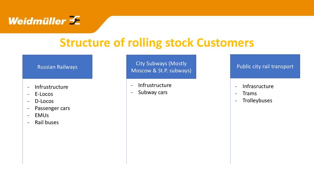 Structure of rolling stock CustomersRussian Railways