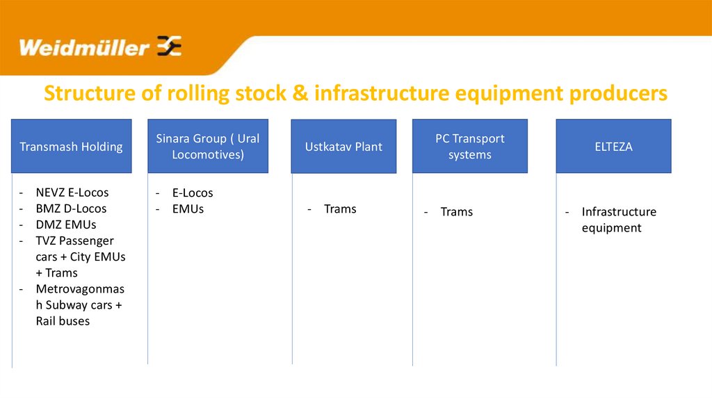 Structure of rolling stock & infrastructure equipment producersTransmash Holding