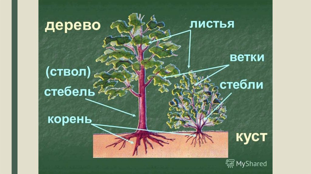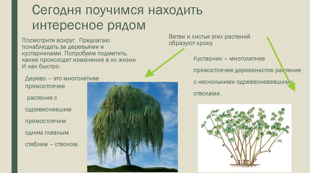 Скажите, какие из растений кустарники, а какие – деревья?