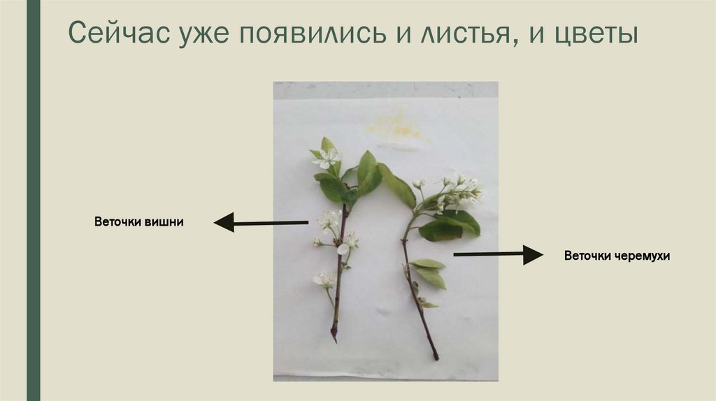 Сейчас уже появились и листья, и цветыВеточки вишни
