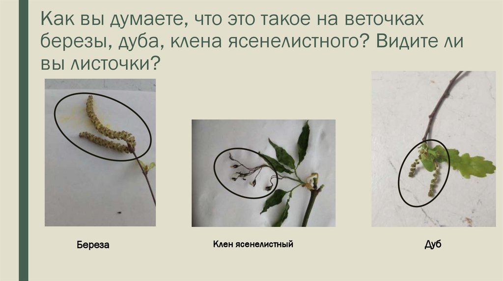 Как вы думаете, что это такое на веточкахберезы, дуба, клена ясенелистного? Видите ли