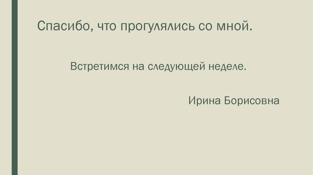 Спасибо, что прогулялись со мной.Встретимся на следующей неделе.