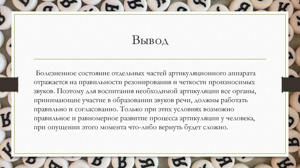 ВыводБолезненное состояние отдельных частей артикуляционного аппарата