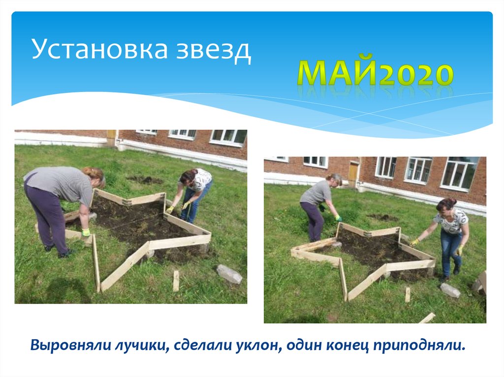 Установка звездВыровняли лучики, сделали уклон, один конец приподняли.