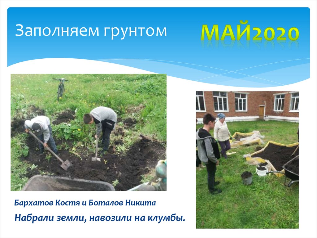 Заполняем грунтомБархатов Костя и Боталов Никита