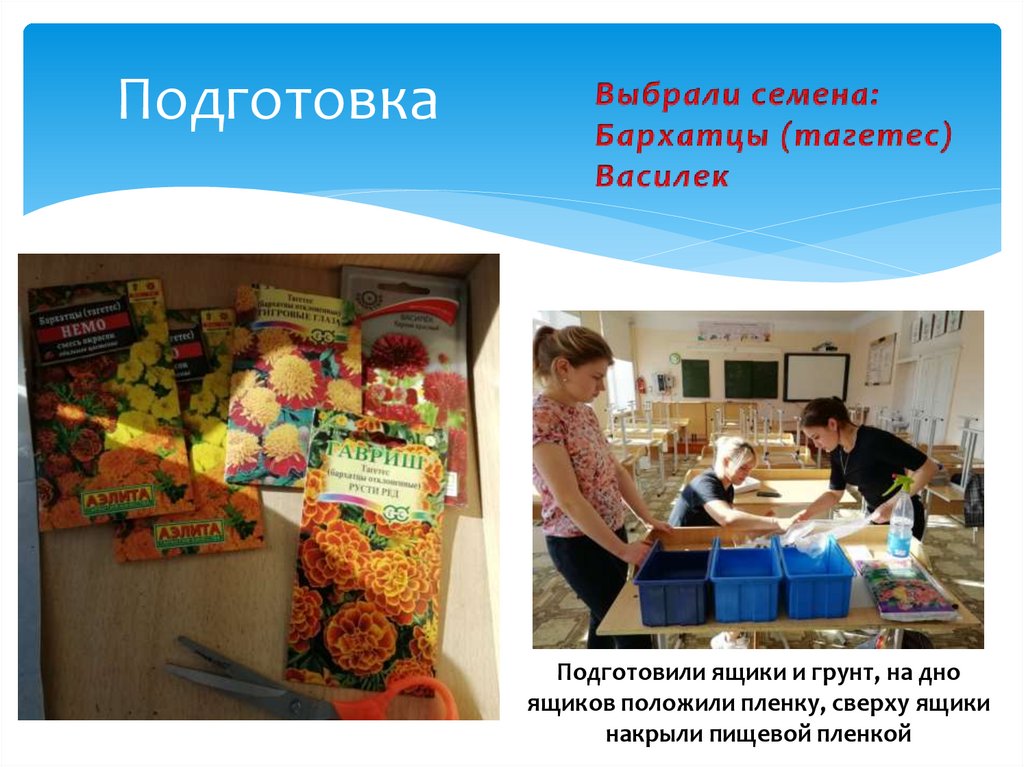 ПодготовкаПодготовили ящики и грунт, на дно