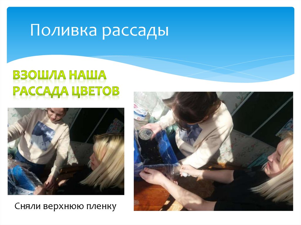 Поливка рассадыСняли верхнюю пленку