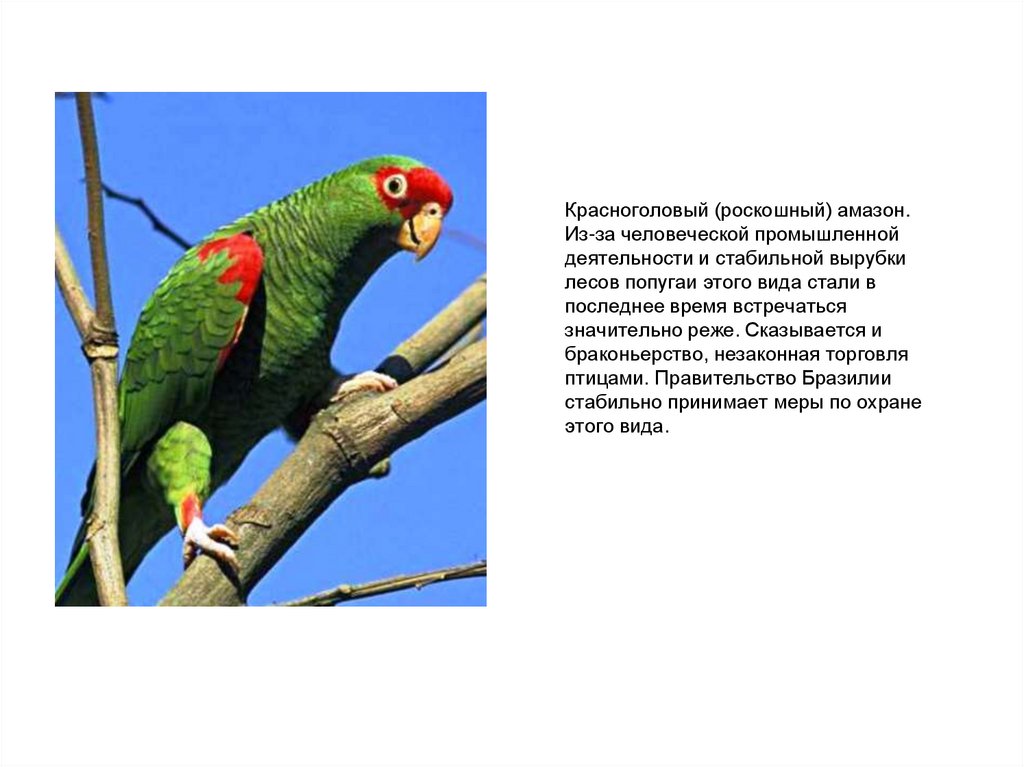Красноголовый (роскошный) амазон.Из-за человеческой промышленной