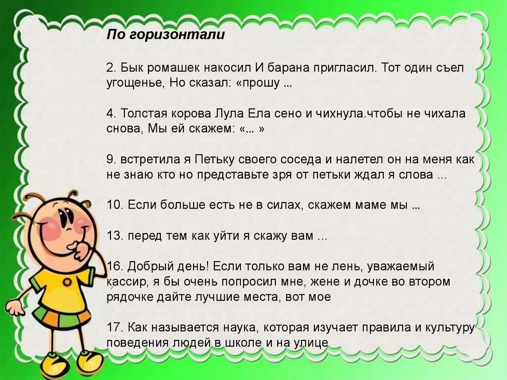 Кроссворд. Этикет