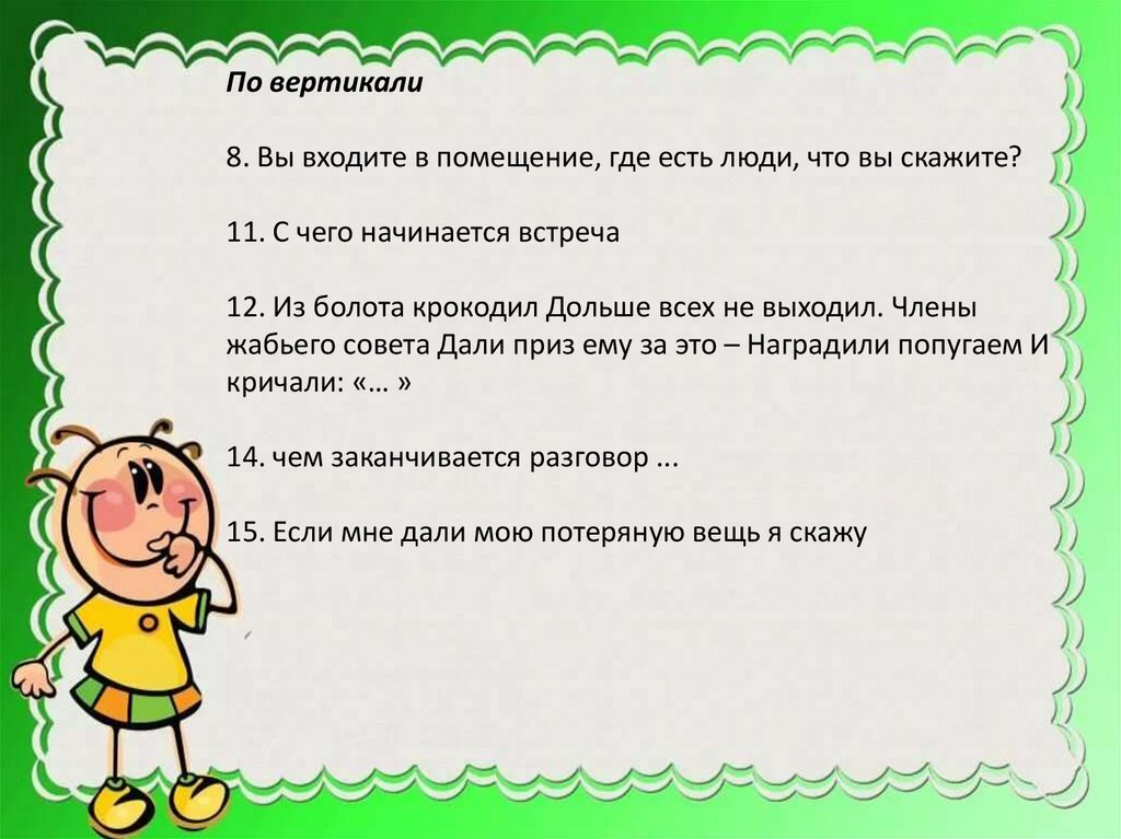 По вертикали8. Вы входите в помещение, где есть люди, что вы скажите?