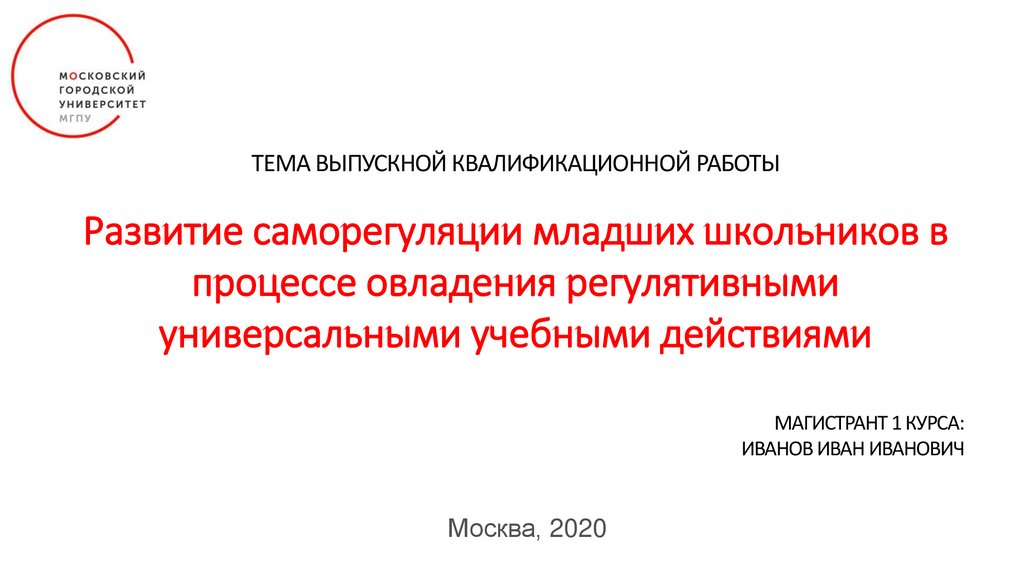 ТЕМА ВЫПУСКНОЙ КВАЛИФИКАЦИОННОЙ РАБОТЫРазвитие саморегуляции младших школьников в