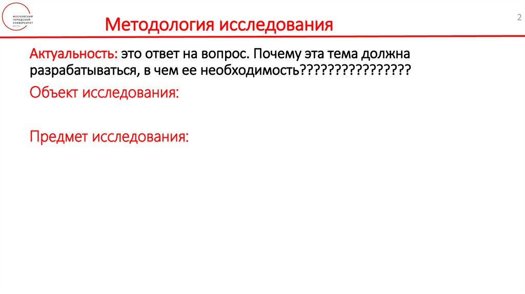 Методология исследованияАктуальность: это ответ на вопрос. Почему эта тема должна