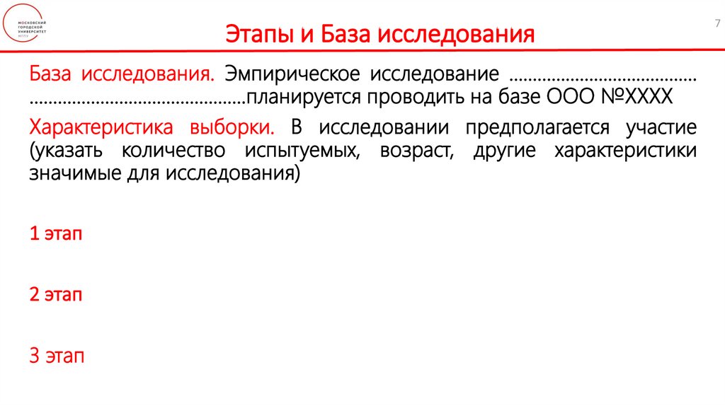 Этапы и База исследованияБаза исследования. Эмпирическое исследование ………………………………….