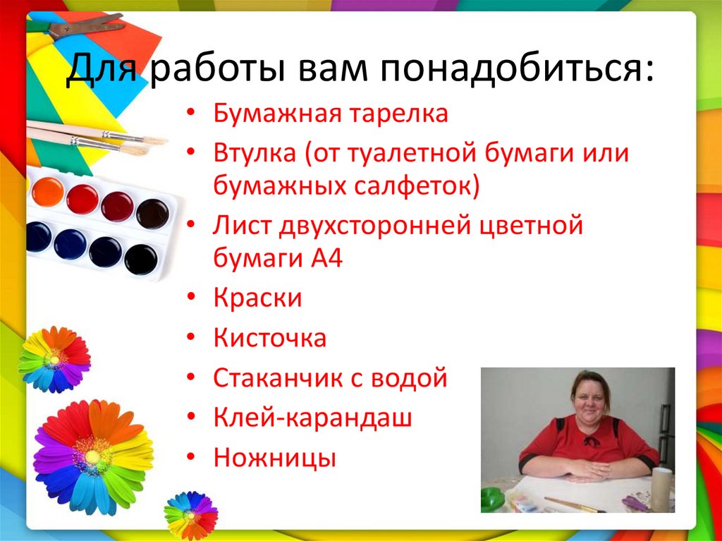 Для работы вам понадобиться:• Бумажная тарелка