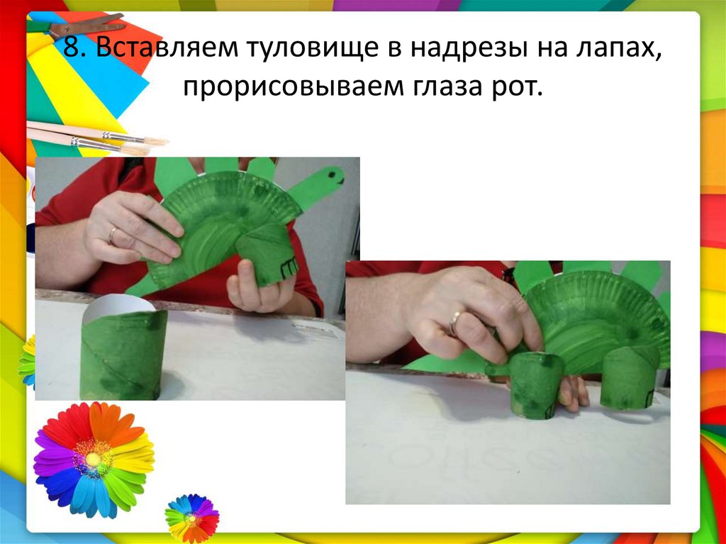 8. Вставляем туловище в надрезы на лапах,прорисовываем глаза рот.