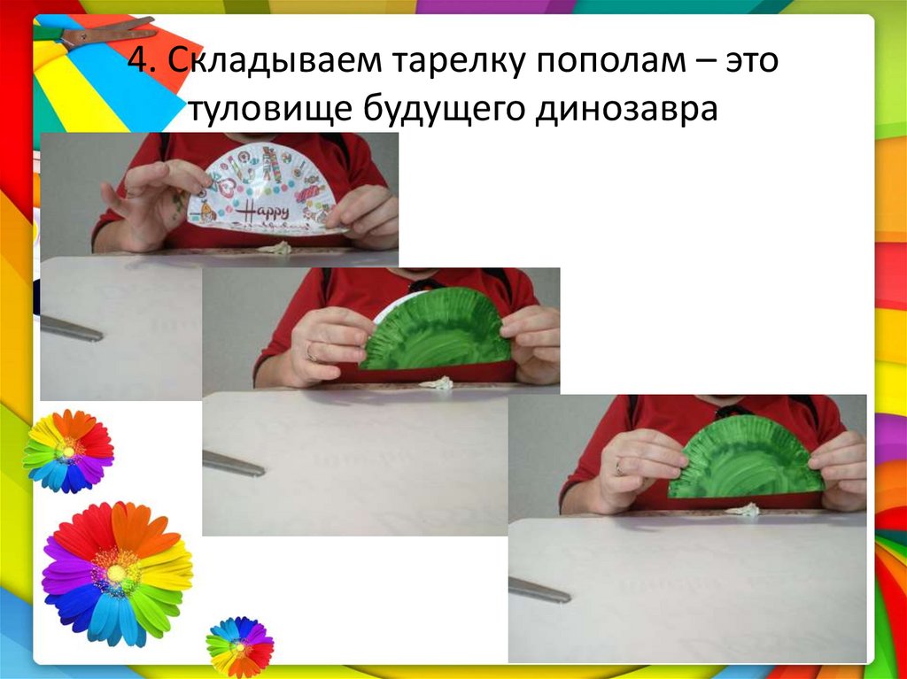 4. Складываем тарелку пополам – этотуловище будущего динозавра