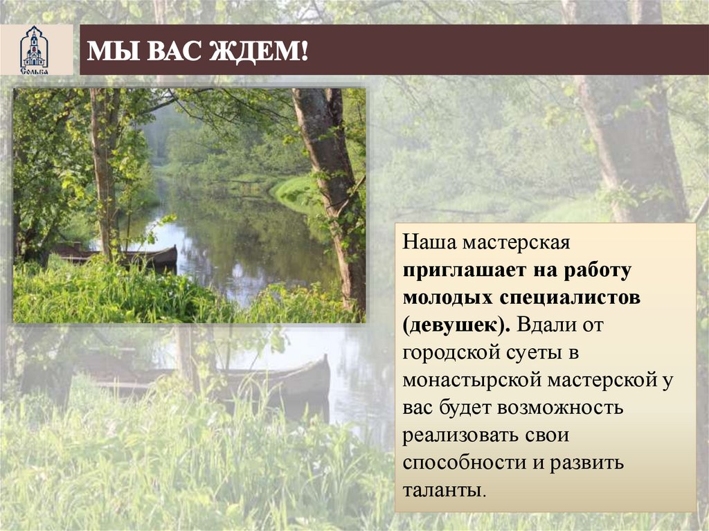 Наша мастерскаяприглашает на работу
