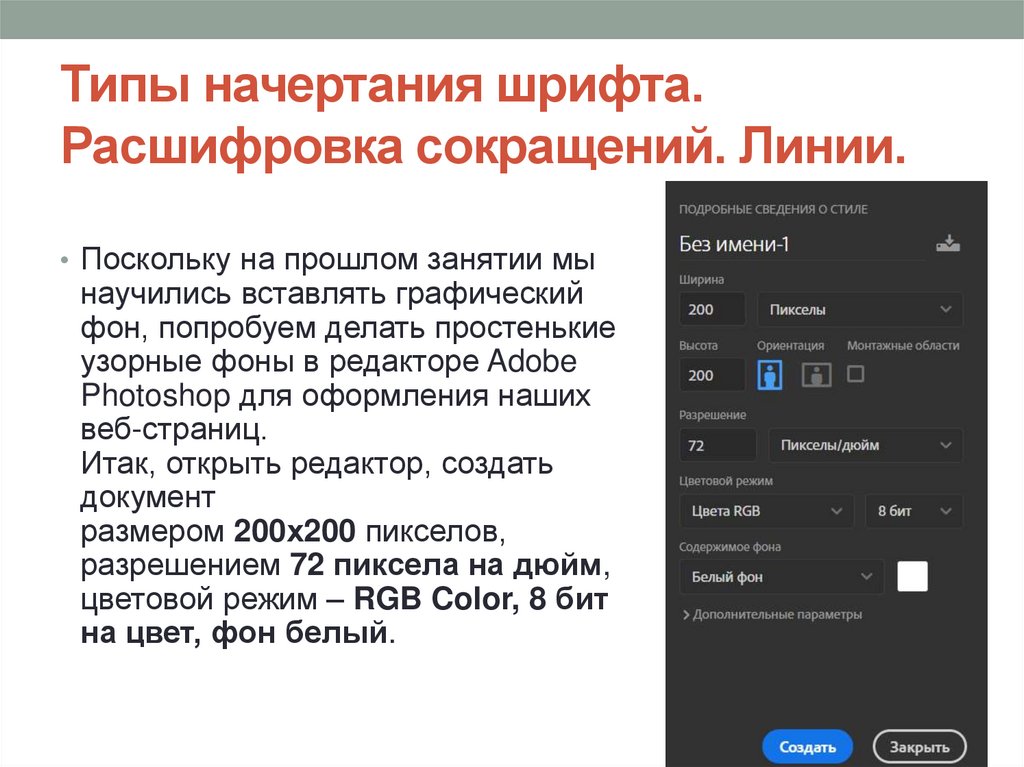 Типы начертания шрифта.Расшифровка сокращений. Линии.
