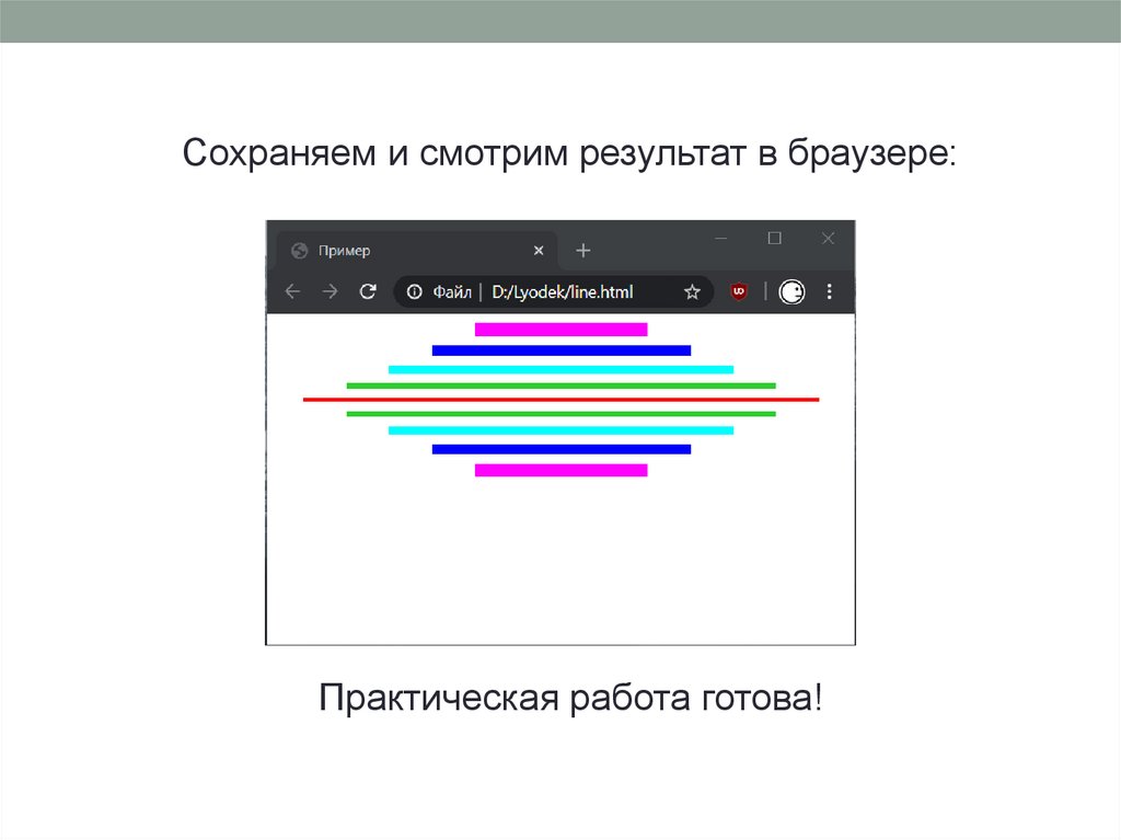 Сохраняем и смотрим результат в браузере:Практическая работа готова!