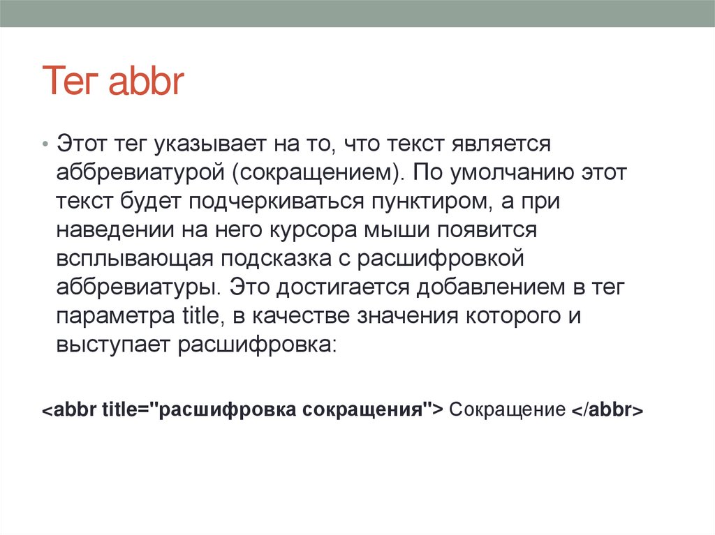 <abbr title="расшифровка сокращения"> Cокращение </abbr>