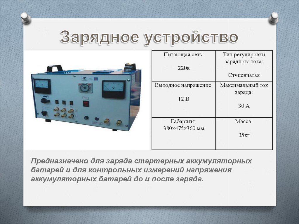 Предназначено для заряда стартерных аккумуляторных