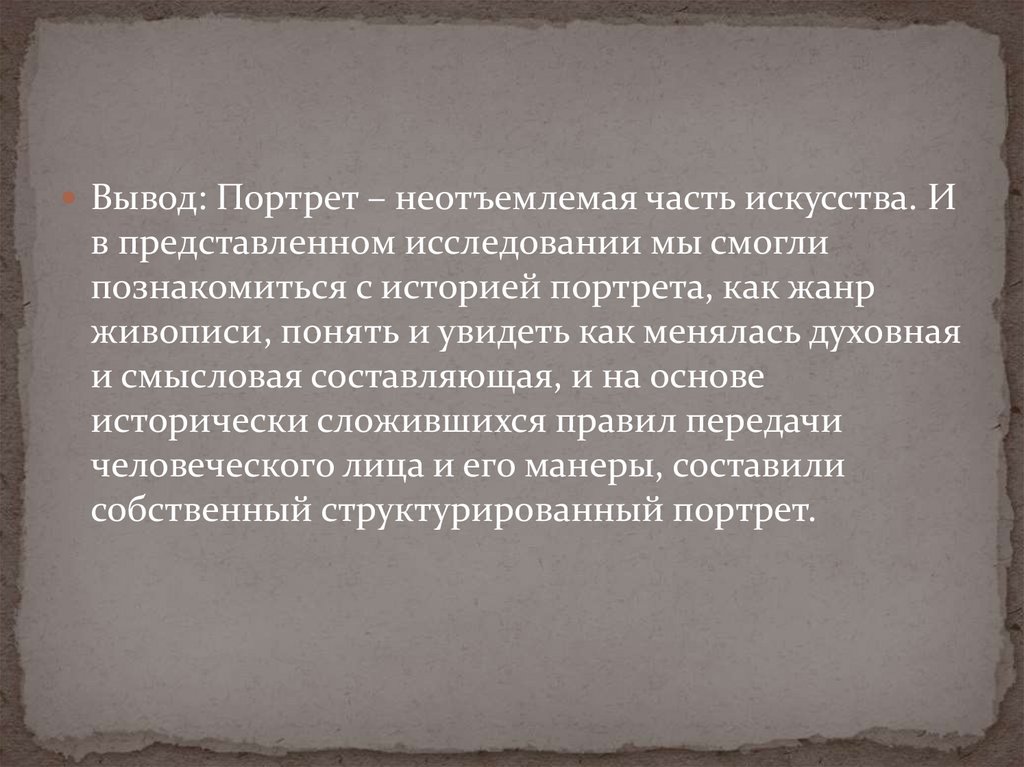 Вывод: Портрет – неотъемлемая часть искусства. Ив представленном исследовании мы смогли