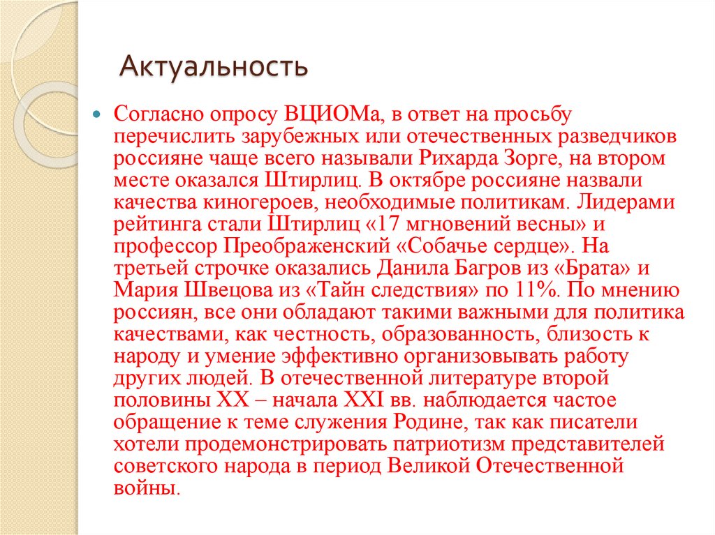 АктуальностьСогласно опросу ВЦИОМа, в ответ на просьбу