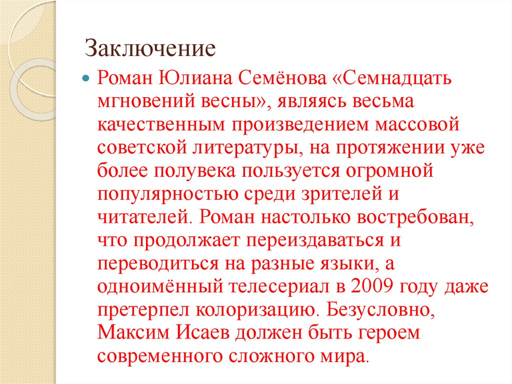ЗаключениеРоман Юлиана Семёнова «Семнадцать
