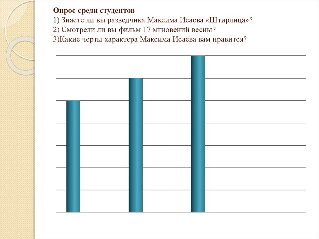 Опрос среди студентов1) Знаете ли вы разведчика Максима Исаева «Штирлица»?