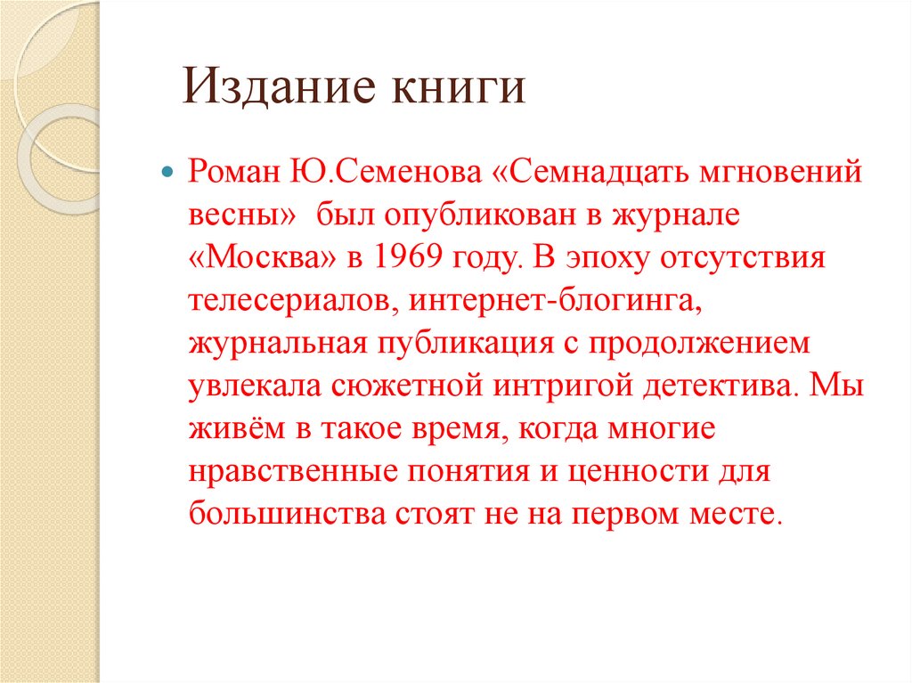 Издание книгиРоман Ю.Семенова «Семнадцать мгновений