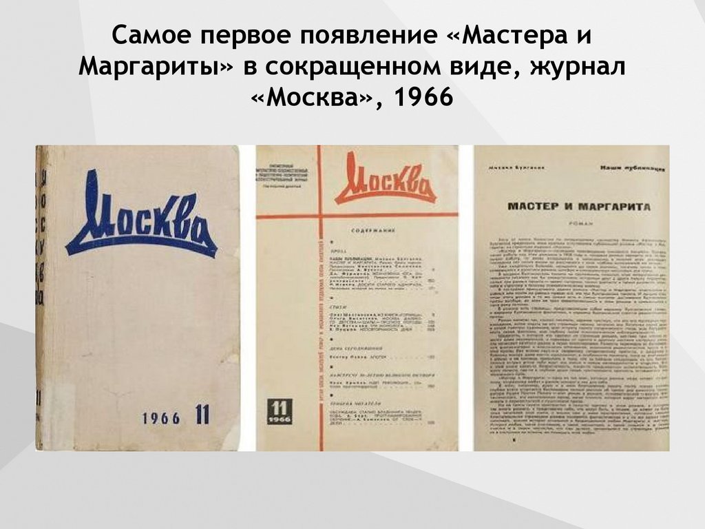 Самое первое появление «Мастера иМаргариты» в сокращенном виде, журнал