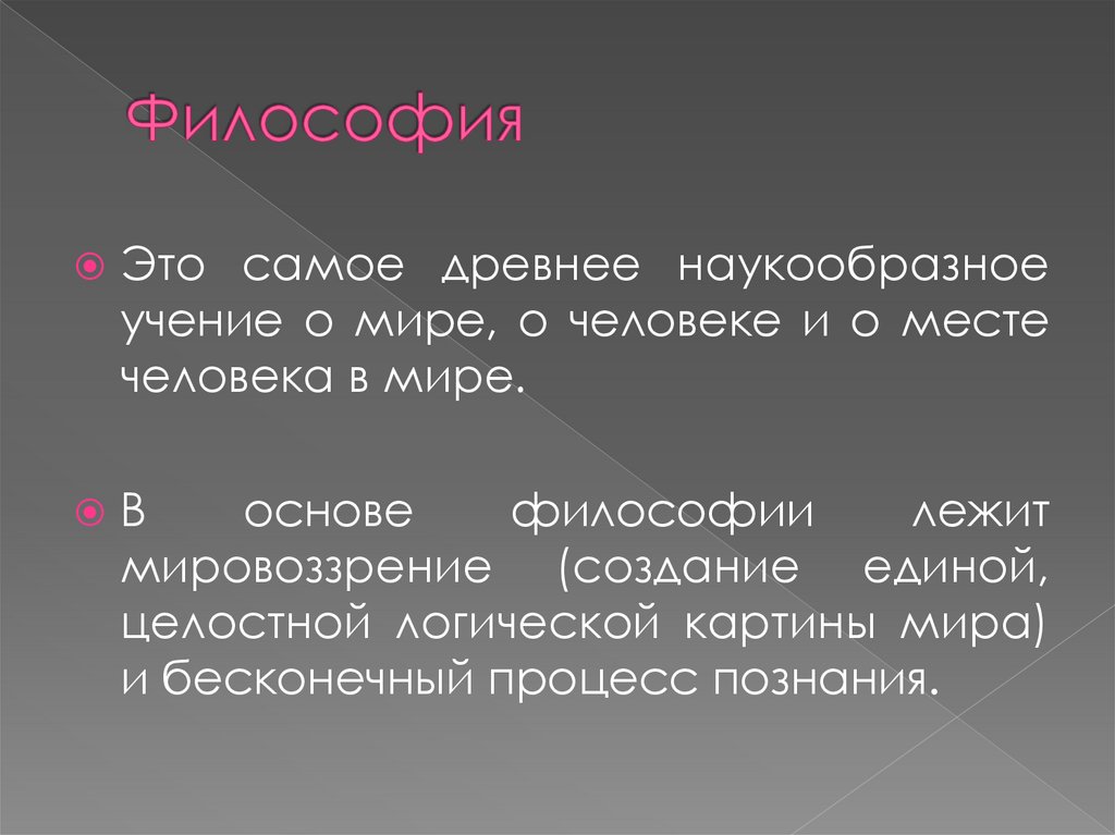 Это самое древнее наукообразноеучение о мире, о человеке и о месте