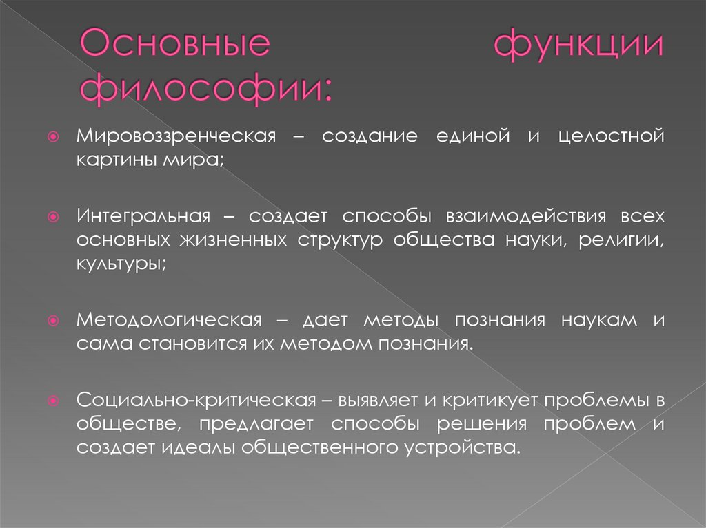 Мировоззренческая – создание единой и целостнойкартины мира;