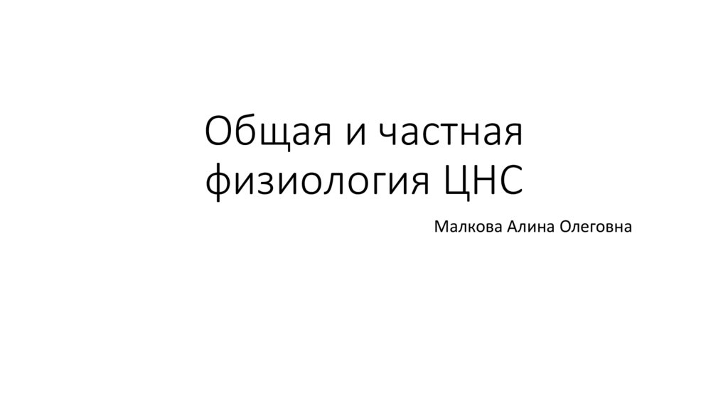 Общая и частная физиология ЦНС
